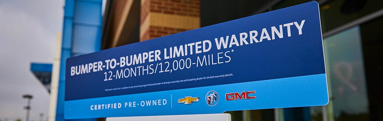 When you own a Certified Pre-Owned vehicle you're covered. That's because every Certified Pre-Owned vehicle comes with an Extended New Car Bumper-to-Bumper Limited Warranty for 12 months/12,000 miles.1 Please keep in mind there are some exclusions. Some examples are: the warranty does not include tire damage or wear, damage due to bedliners, damage due to insufficient or improper maintenance, damage due to contaminated or poor-quality fuel and misuse of the vehicle such as driving over curbs, overloading, racing or other competition (proper vehicle use is discussed in the CPO Owner's Manual).